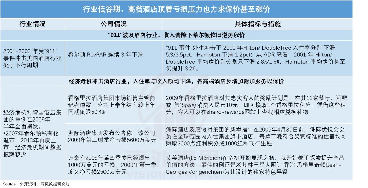 复盘希尔顿的发展史会发现,1996年至今,美国酒店业的几轮低谷期里,其几乎都忍着巨额亏损,坚持“挺价”。