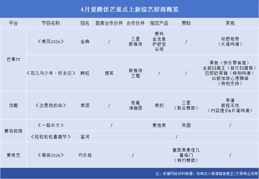 对比芒果TV和优酷,腾讯视频与爱奇艺的4月综艺招商成绩稍显暗淡,不过接下来,两家都有“新王牌”可打。