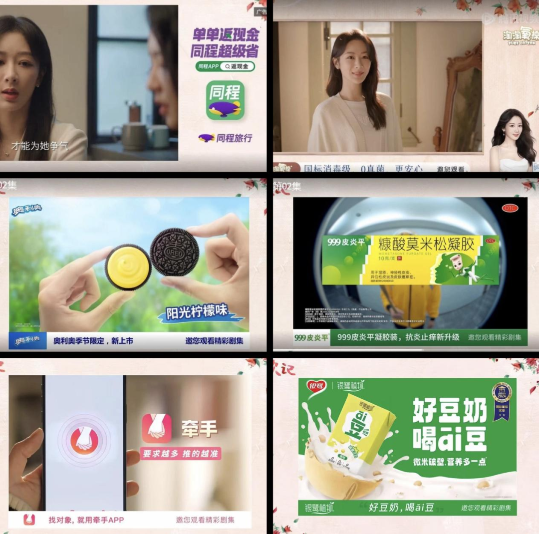 尤其是《春色寄情人》。据文娱君统计,该剧前3集的视频广告仅有同程旅行、Shokz韶音、皮炎平、唯品会4家品牌。