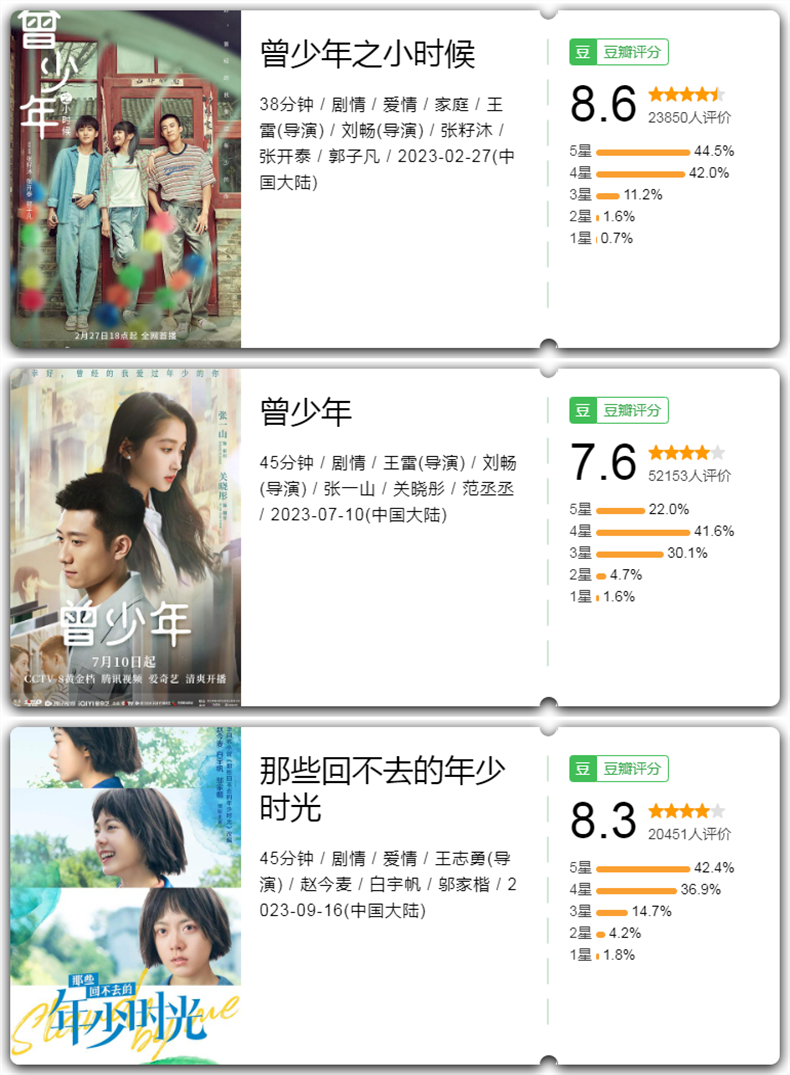但豆瓣评分都能收获7.5分以上甚至到8分以上,是很明显的小圈子高口碑。