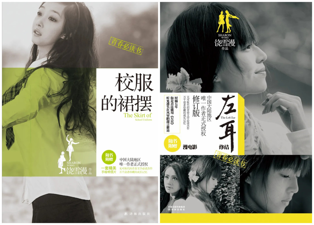 饶雪漫在文字影视化方面是有一点自信的,毕竟她作为当时畅销小说作者中鲜有的70后作者,一部分商业化头脑来得比很多80后要早。2003年就开启了书模海选,内页启用真人书模照片,与当时流行的漫画图片和审美截然不同。