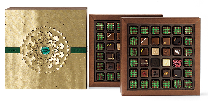与之相对的是推出不久的的2016秋冬季巧克力礼盒,外包装设计采用了斑斓的波西米亚风图案,灵感似乎与2017年 Giorgio Armani 2017 春夏季女装飘逸、梦幻的风格相对应。