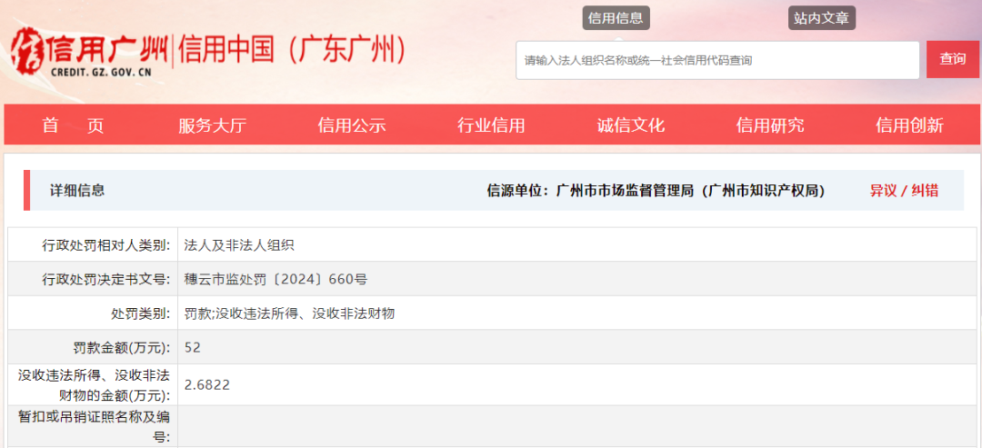 近日,信用广州官网公开信息显示,广州市凯秀化妆品有限公司(下称“广州凯秀”)因涉嫌生产不符合化妆品技术规范的海藻面膜等违法行为,被处没收违法所得2.68万元,罚款52万元,罚没合计54.68万元。