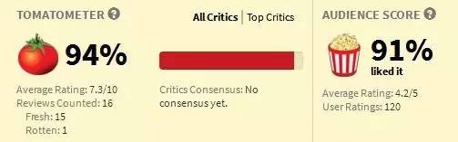 烂番茄新鲜度94%,在近期片子里已算很高,即便是奥斯卡大热[爱乐之城],也不过93%新鲜度。