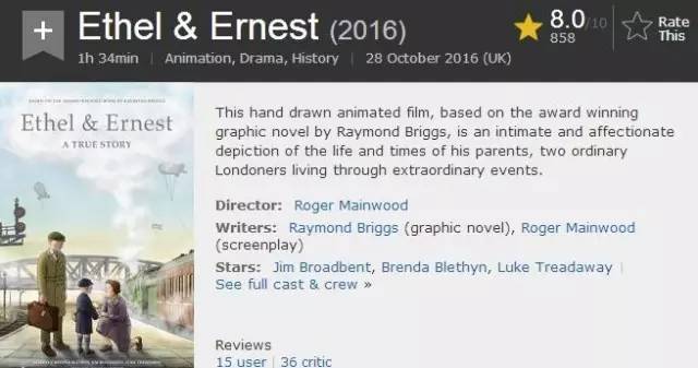 第二,牵动姜君泪腺的,也是影片平实感人的故事。[埃塞尔与欧内斯特]讲述了原著漫画家雷蒙德·布里格斯的父母,一对普通英国夫妇从1928年邂逅相爱、到1971年相继离世的故事。