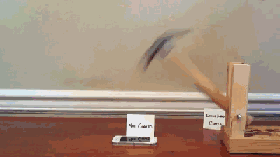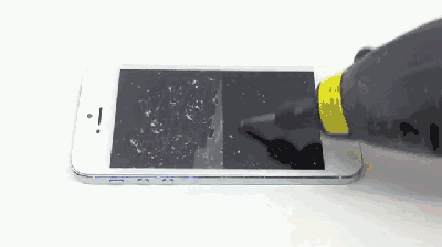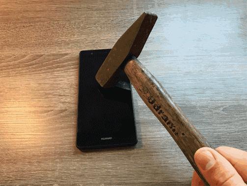 没使用ProtectPax的手机在铁锤的威力下是这样的。
