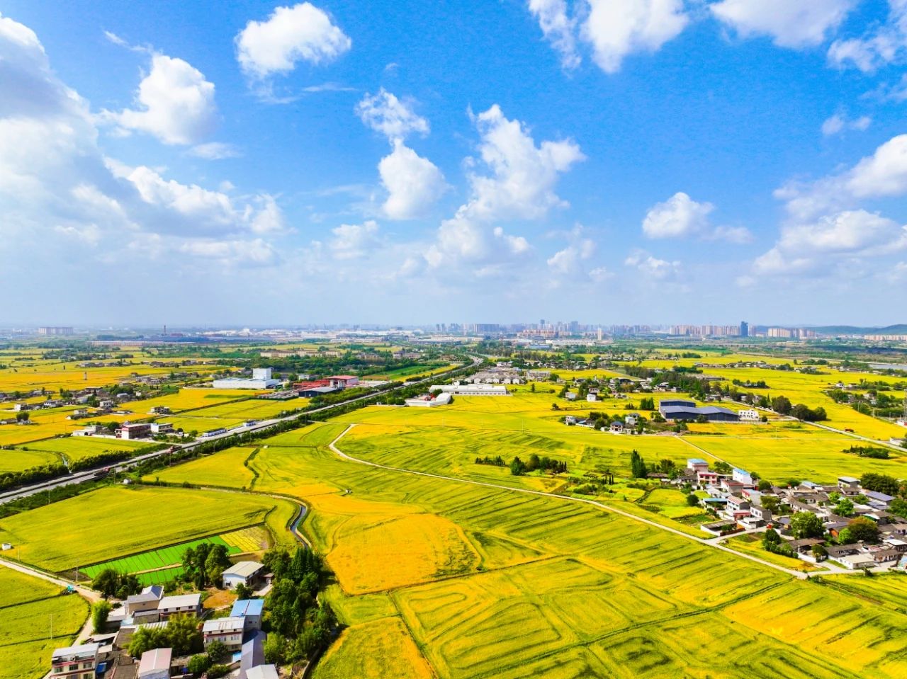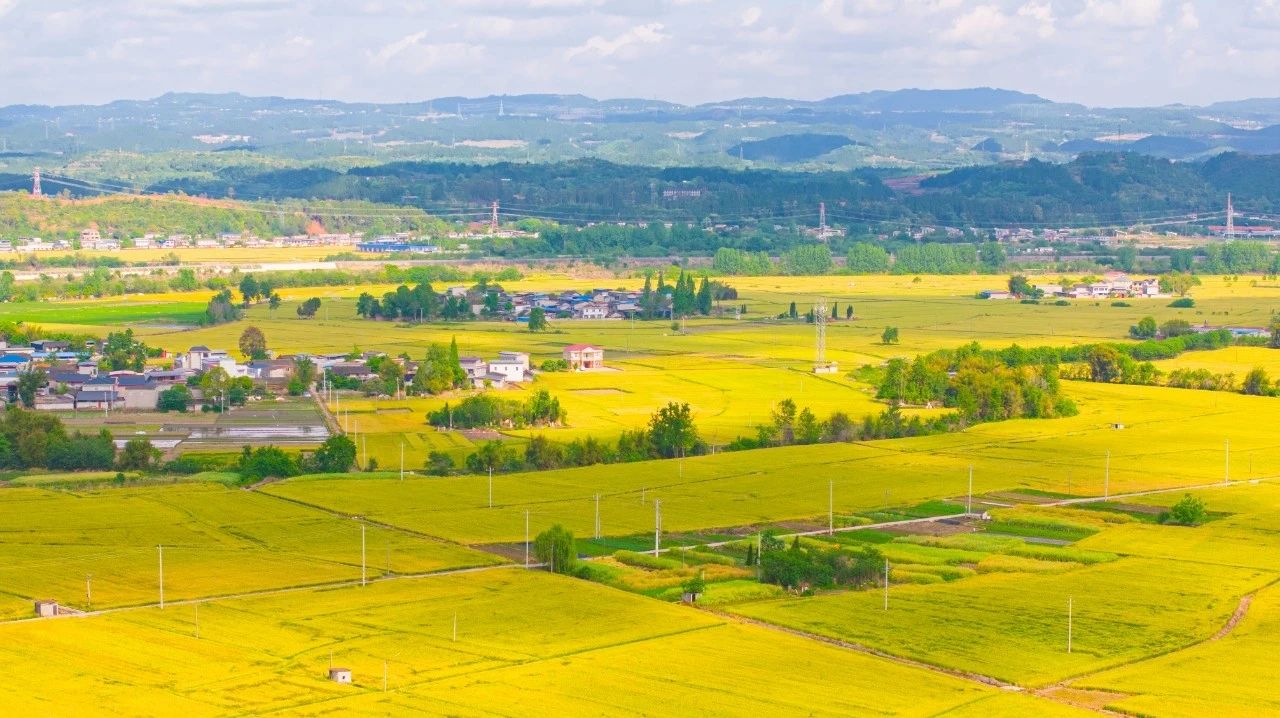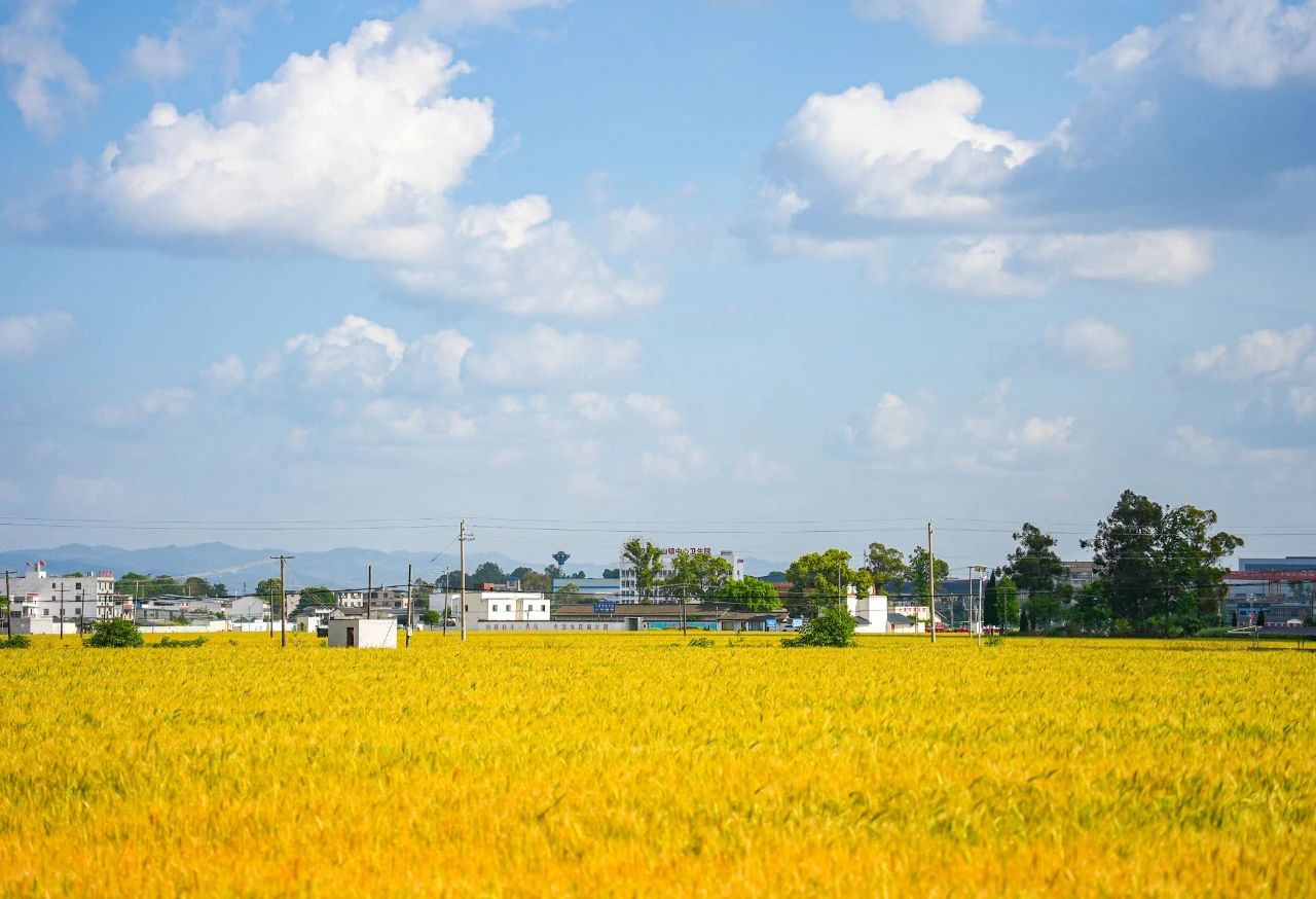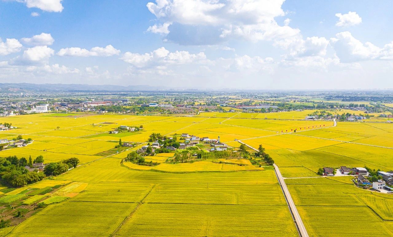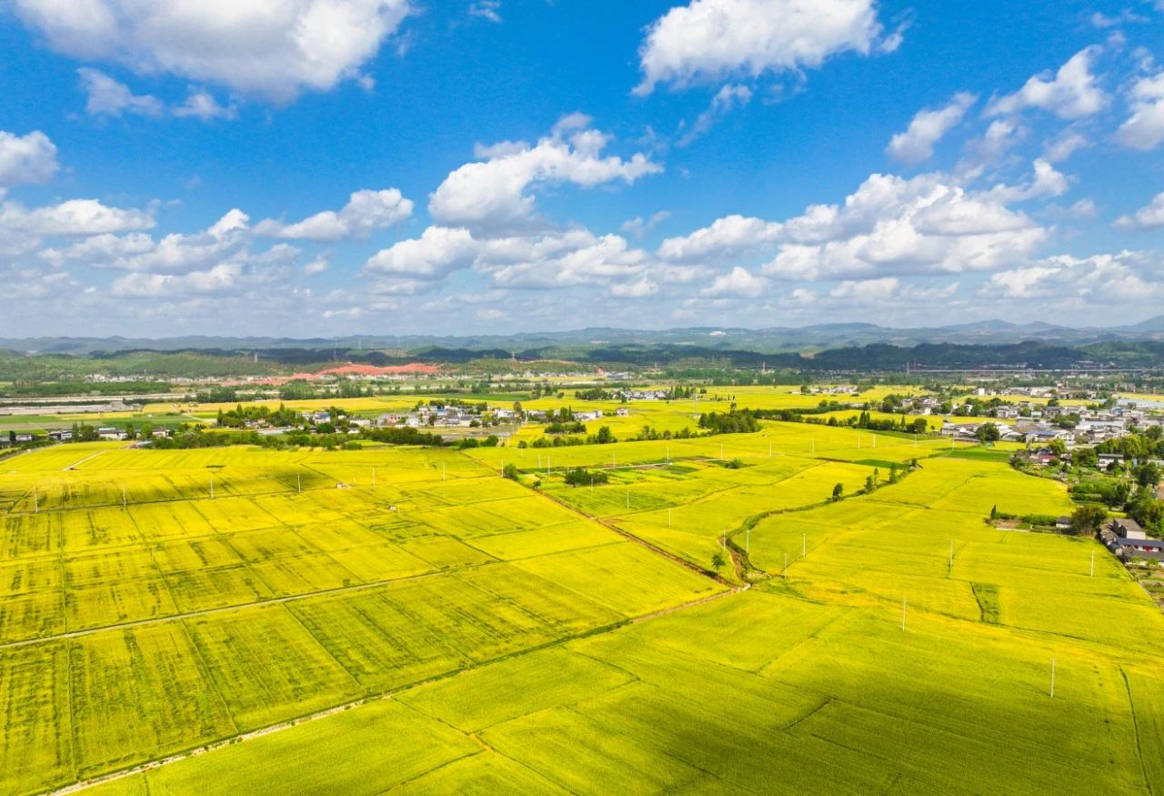 想问春天最美的画面在哪里,位于都江堰灌区广汉片区,油油的麦田给了我们春天最美的答案,远远望去,麦子长得密集整齐,好像剪刀裁过一般铺散开去,仿佛置身于黄色的大海中,宫崎骏笔下的美也不过如此。