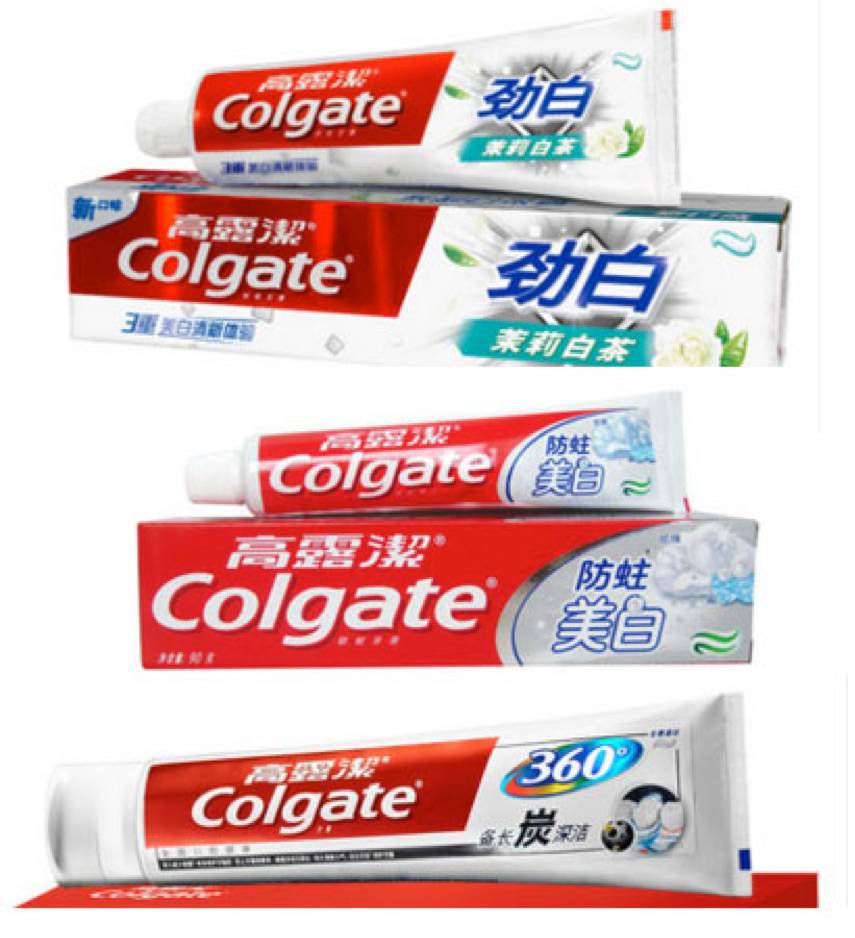 一方面,牙膏包装的主色调不会有太大变化。以高露洁为例,红色基本是贯穿其全部牙膏产品的颜色,虽然其不同产品在颜色的组合上有变化,但还是容易让人混淆。佳洁士的包装也如此。