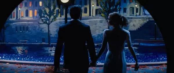 行云流水般的一镜到底让人感慨拍摄难度之大的同时,也为整部电影奠定了“爱乐之城”的主基调。“我喜欢经典歌舞片中连贯的镜头,不像九十年代后那种靠剪辑出来的。歌舞片是在调度、镜头上超越歌舞剧,而不是靠把舞台传统的表演、布景剪辑得支离破碎。”导演Damien Chazelle说道。
