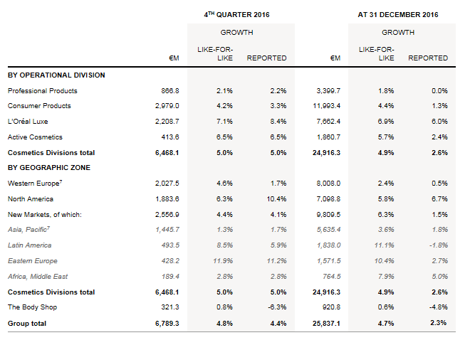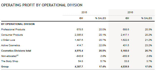 2017年2月10日,全球最大美妆集团欧莱雅公布2016年全年财务数据,营业利润再创新高。