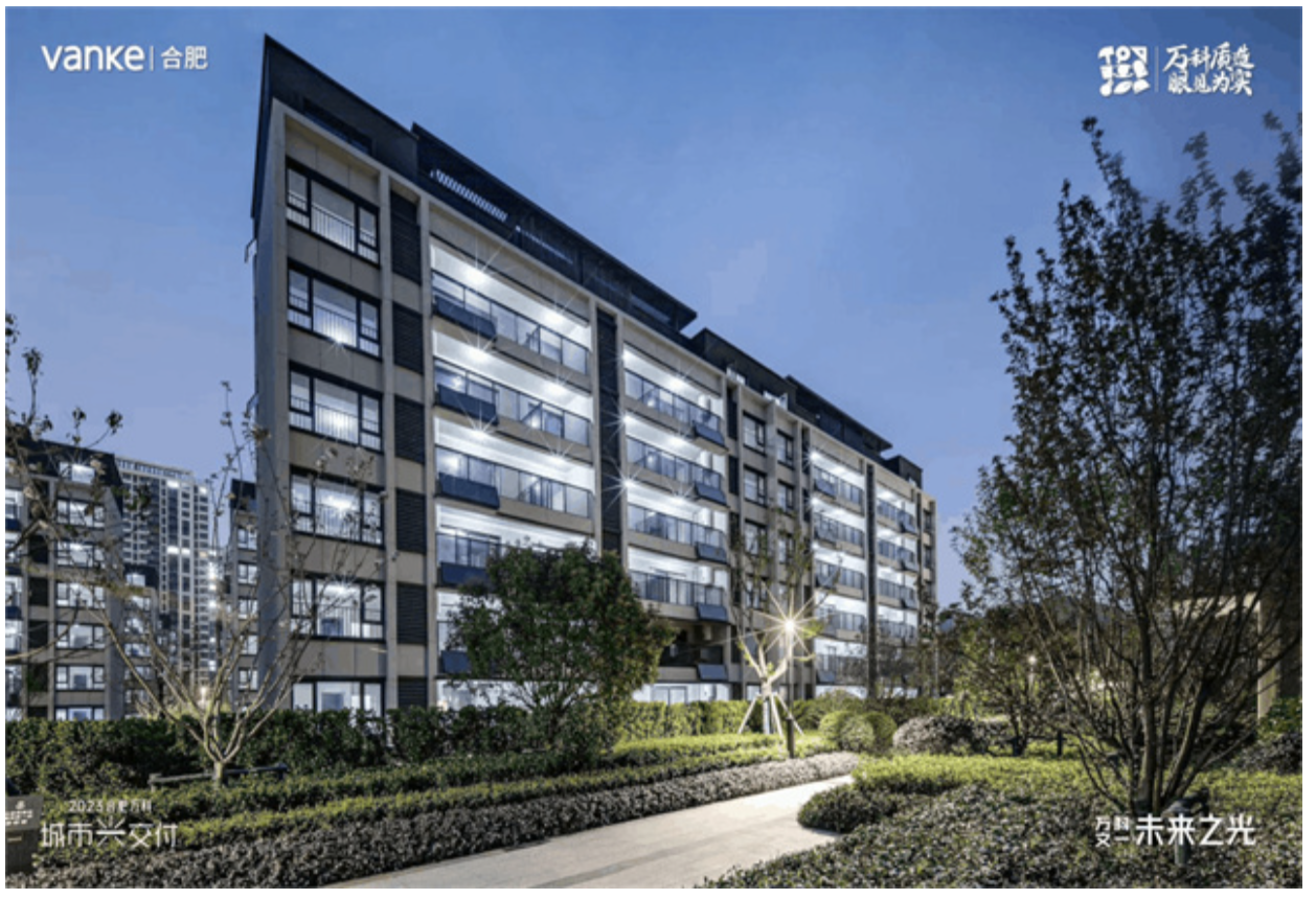 NO.2丨贰基于此,万科发出行业首个交付主张——22条城市“兴交付”主张。一场全然焕新的合肥万科城市“兴交付”也随之开启。万科用一场场城市“兴交付“,让所有期待美好发生:交付丰盛多元的美好场景、靠谱贴心的全周期服务、从好到好有趣的生活体验、从好到好美的高分作品……首先,城市“兴品质”很好理解。在建筑设计中,万科始终强调融于城市又自有风格。以当地文脉、自然环境为底色,因地制宜进行项目整体规划,在建筑选材、立面设计、泛光系统、景观体验等多维度更新城市的肌理。比如改善方面,万科打造了合肥东城首个全线产品系改善大盘——万科文一·未来之光。该项目洋房公望区已于近日交付。20栋6-8层纯粹洋房布局,在合肥市场上非常少见,未来的居住品质感不言而喻。立面上,建筑线条十分明朗,采用大体块玻璃的拼合,营造通透的居住效果,简洁高级。