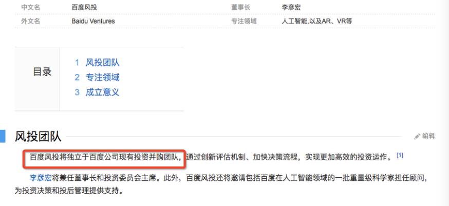 百度风投在成立之初就定位于「独立的风险投资机构」,从来都不是百度的战略投资部门。