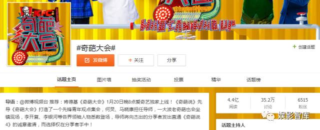 开播以来,《奇葩大会》多次登上新浪微博热搜榜,微博话题量讨论量突破35.2万,阅读量达到4.4亿。豆瓣评分高达8.3分,目前上线4期,爱奇艺总播放量破亿。