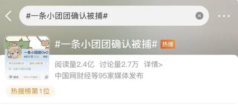 据公开资料显示,小团团生于1994年,2017年初开始做游戏直播,唱歌的切片内容在抖音小火后,签约斗鱼,并很快成为斗鱼头部主播之一。和其他仅在斗鱼站内有知名度高的主播不同,小团团站内外的知名度都不错,这也是她被捕后引起外界巨大关注的原因之一。