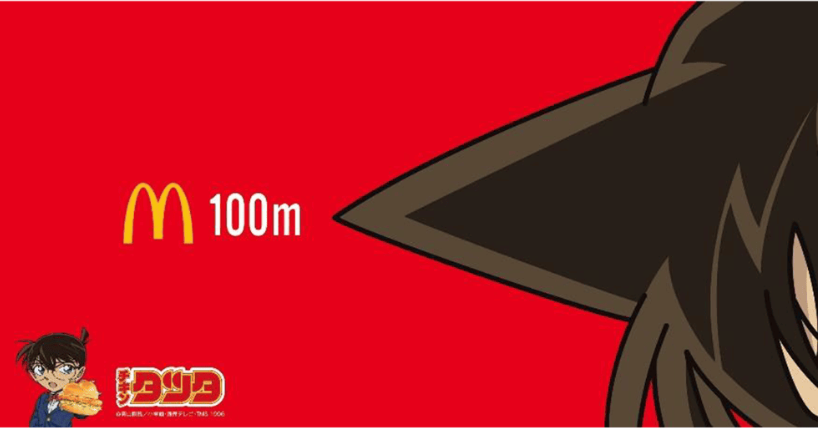 而麦当劳日本这次解构联名对象,把毛利兰的发型做成指路牌,可以说不仅把“指路牌营销”玩出了新思路,也是把联名玩出了新思路。