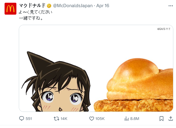 这条官方玩梗的帖子,截至4月24日获得10.5万次点赞、1.4万次转发和551条评论,阅读量达到860万次。麦当劳以及《柯南》这部动漫的话题,都因网友自发参与而进入新一轮传播。