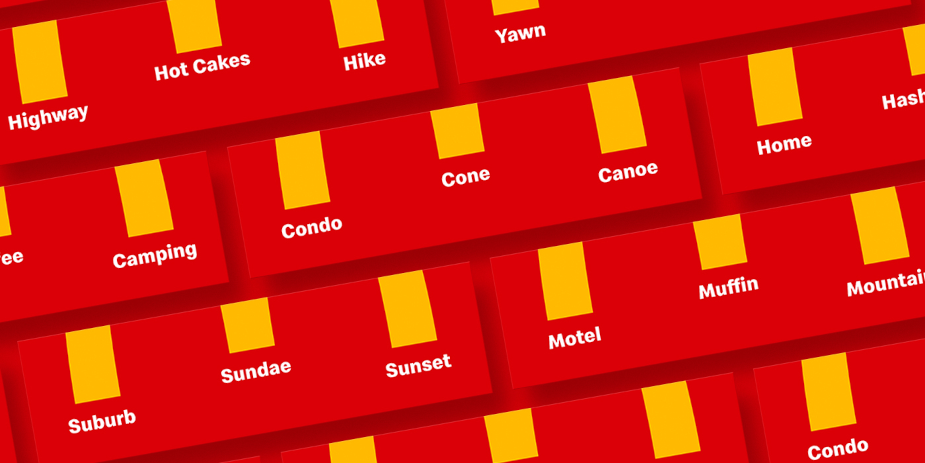 还有,“Condo(公寓)”和“Canoe(划艇)”之间,是“Cone(圆筒冰淇淋)”;“Motel(旅馆)”和“Mountain(山)”之间,是“Muffin(玛芬蛋糕)”……