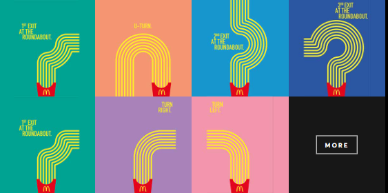 早在2018年,麦当劳加拿大就用其他符号代替箭头来示意方向——他们对金拱门logo进行了拆解,每一个局部都代表一个方向。该活动还获得了2018年的戛纳国际创意节户外大奖赛、“One Show Design”金奖等多个国际奖项。