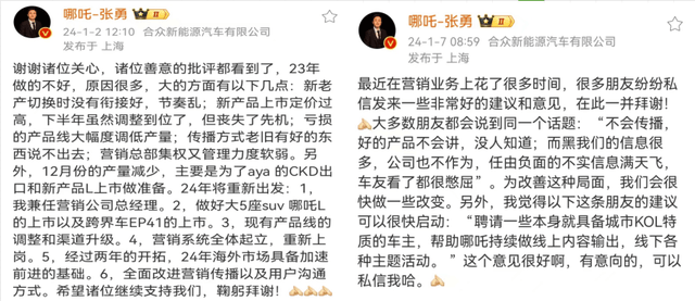 进入2024年,张勇发文称哪吒失速的原因有两个,一个是新品定价高,没有继续打价格战;一个营销有短板,比如没有聘请“城市KOL”做内容输出。