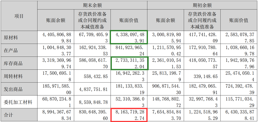这也就是说,TCL中环的存货,就是截至报告期末的实时账面价值。
