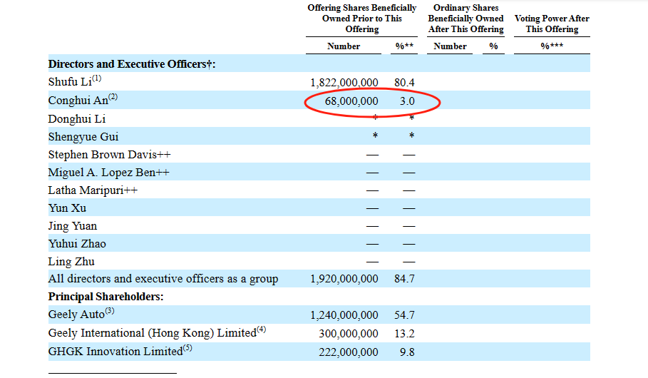 安聪慧不仅是极氪的CEO ,也是极氪的第二大个人股东。