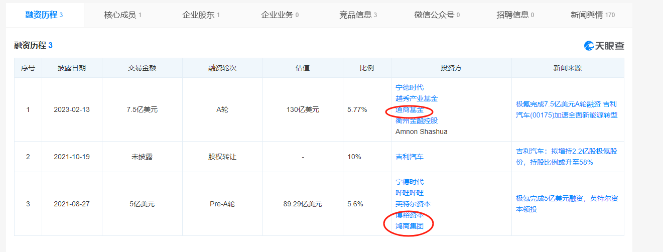 天眼查显示,宁波通商基金此后还参与了极氪汽车2021年、2023年两轮融资,融资估值一度高达130亿美元。