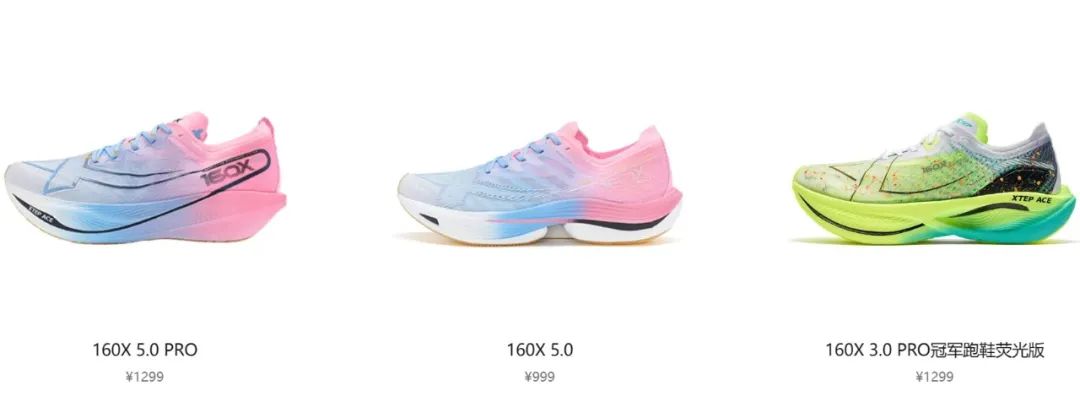 2016年,特步推出“竞速160”跑鞋。截至目前,“160X系列”迭代5代,有83位运动员穿着该系列跑鞋获得370个冠军,带动特步跑鞋销量上涨。2021年,特步营收首次超过百亿元。此后,特步将“跑步”写进公司战略,“跑鞋业务”在最新财报中占据大量篇幅。