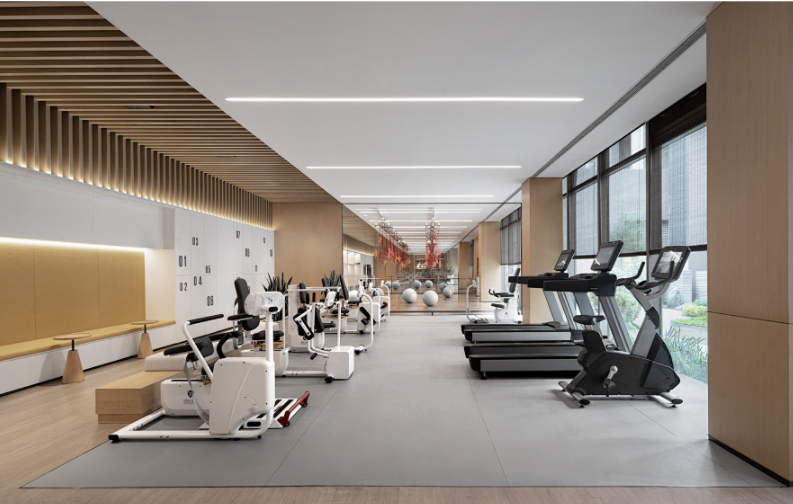 园林内部则是巨大的「混龄乐园」,每个人都都有自己的舒适圈。儿童游乐设施区把游乐场搬到楼下,还有为成人和老人设计的活动设施,陪伴孩子的同时,大人也能运动社交。儿童乐园、会客厅、健身房……连相连各个楼栋的架空层被填满了各种功能,刮风下雨,也不影响孩子玩耍,大人社交。