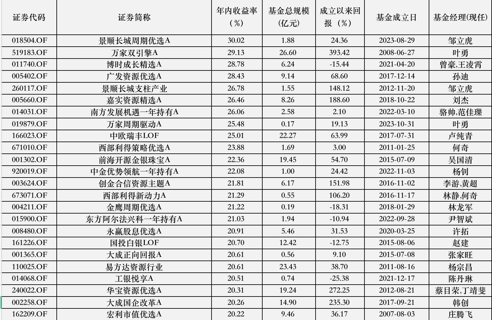 今年以来,资源股飙涨 ,重仓相关板块的基金的收益亮眼。