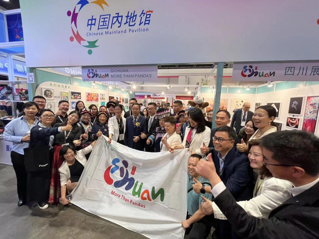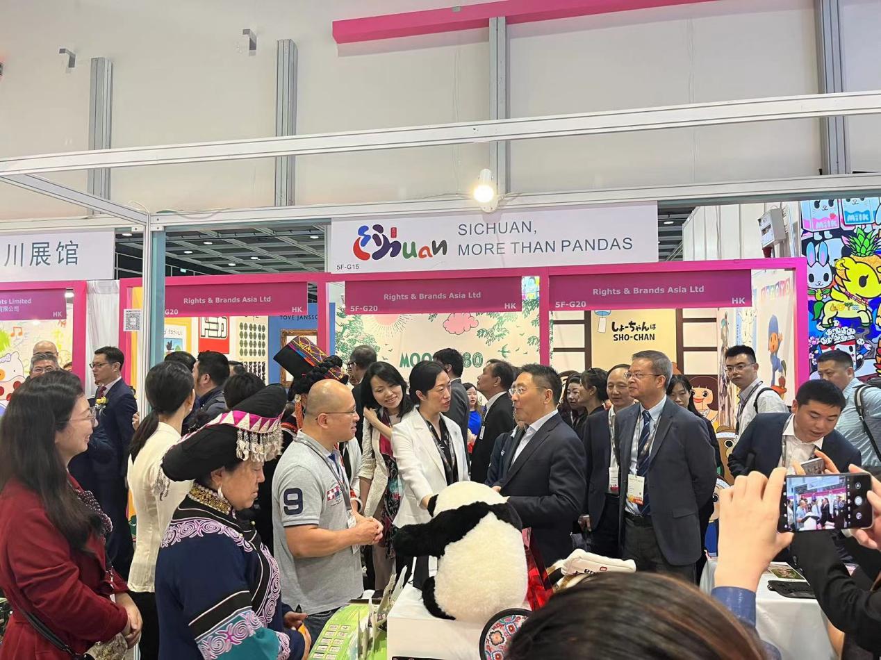 本次四川展馆以“安逸四川·熊猫家园”为主题,组织了四川文化创意产业研究院、四川省旅游投资集团有限责任公司、四川人民艺术剧院有限责任公司、成都市文物考古工作队、成都金沙遗址博物馆、成都杜甫草堂博物馆、成都武侯祠博物馆、成都艺术剧院有限责任公司、五粮液集团有限公司、成都寻锦处织绣文化传播有限公司、四川有彝文化科技有限责任公司、四川夯丸文化传播有限公司、百分之三十(成都)文化发展有限公司、成都耕云文化传播有限公司、犀酷时代(成都)文化传播有限公司、北川羌族自治县伊珎羌绣有限公司、成都华珍藏羌文化博物馆、成都杨德全蜀绣博物馆、成都刘氏竹编工艺有限公司、四川染空寺文化传播有限公司、青羊区非物质文化遗产保护协会等文博、文旅、非遗领域企业代表参加,现场展示精品IP授权项目百余个,吸引了众多观众及买家驻足观赏和协商洽谈。