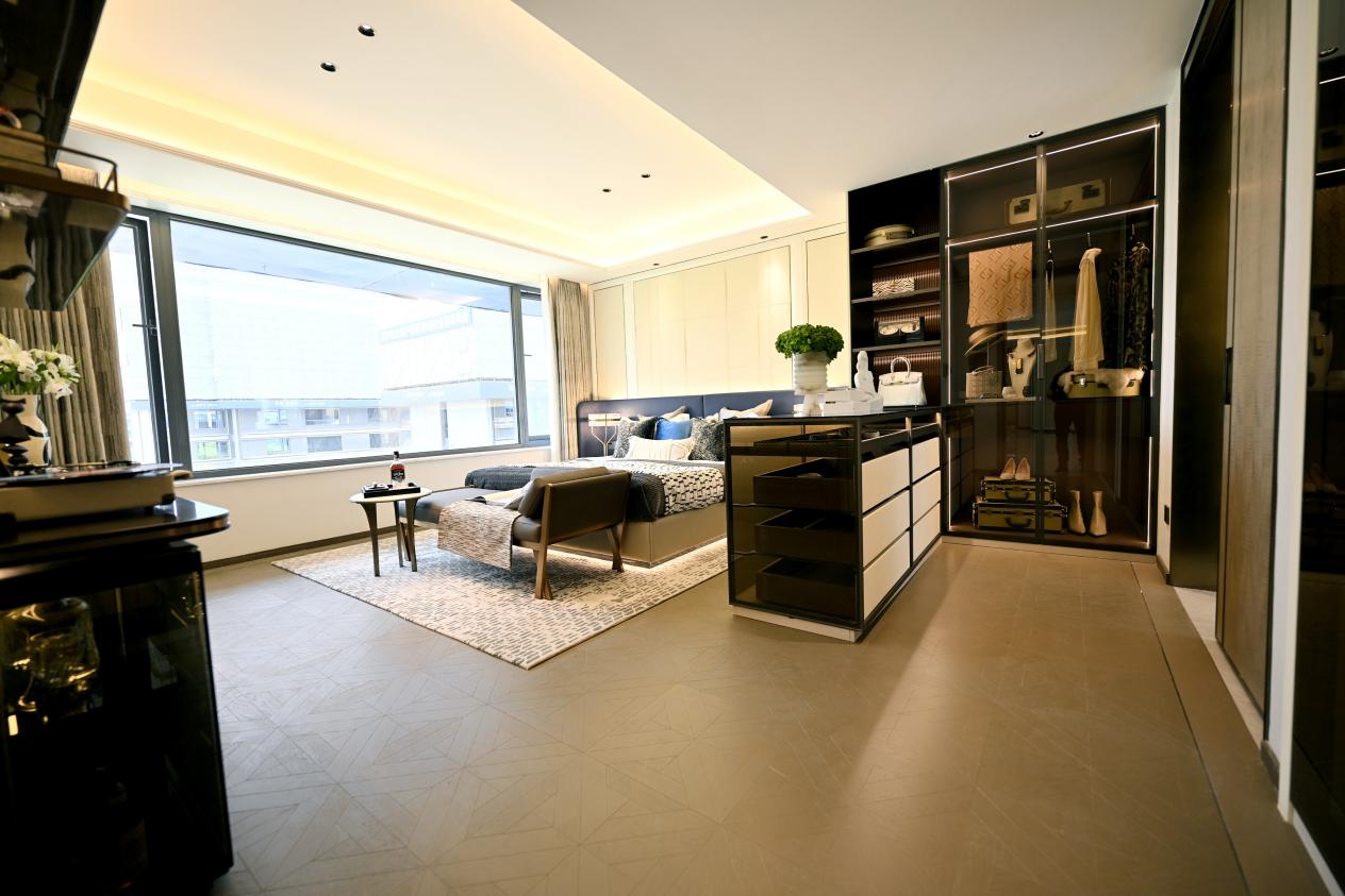 约35㎡奢华大套房主卧,真正做到“大主卧式独立居家”:约4.8米面宽,可安置5星级酒店的榻前沙发+小型办公桌,让生活更显格调;拥有采光窗的梳妆台,让女主人静心打扮、每日光彩动人;连体大衣柜收纳区,可以成为独立的更衣室,盛纳一年四季的时装和饰物;大卫浴五件套(双台盆、洁具、淋浴间、浴缸)齐备,让私密时光更显从容奢逸。