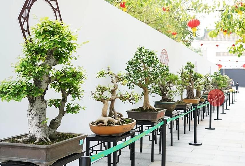 展览汇集了数十种珍奇品种,数百盆精巧的盆景花卉齐齐盛开在兴隆湖畔,当巧夺天工的川派盆景与湖光水色相连,独属于春夏的美好呼之欲出。
