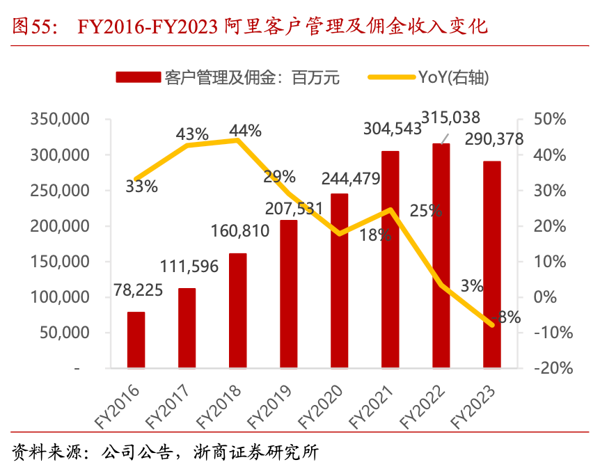 阿里同期的客户管理收入增速分别为-5.0%、10.0%、2.7%、0.5%。无须多言,肉眼可见的低增速背后,是阿里对未来的焦虑。