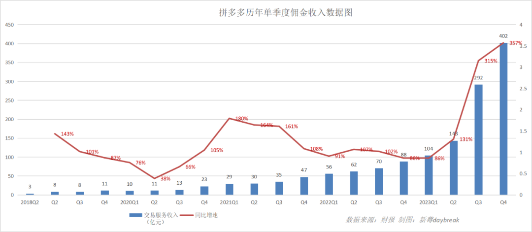 值得一提的是,过去一年拼多多的佣金收入增速过于凶猛,以至于盖过了广告收入的增速。
