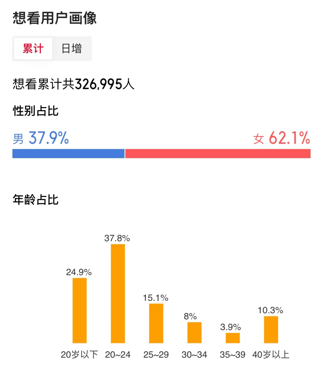 日本动画电影从去年的《铃芽之旅》《灌篮高手》展现出强劲的票房潜力,且这种潜力也是国内电影市场一直希望抢占的年轻用户。猫眼专业版显示,《哈尔的移动城堡》在五一档中20-24岁的年轻用户占比最高,达40.2%。而《间谍过家家》想看画像中,24岁以下用户也达到60%以上。