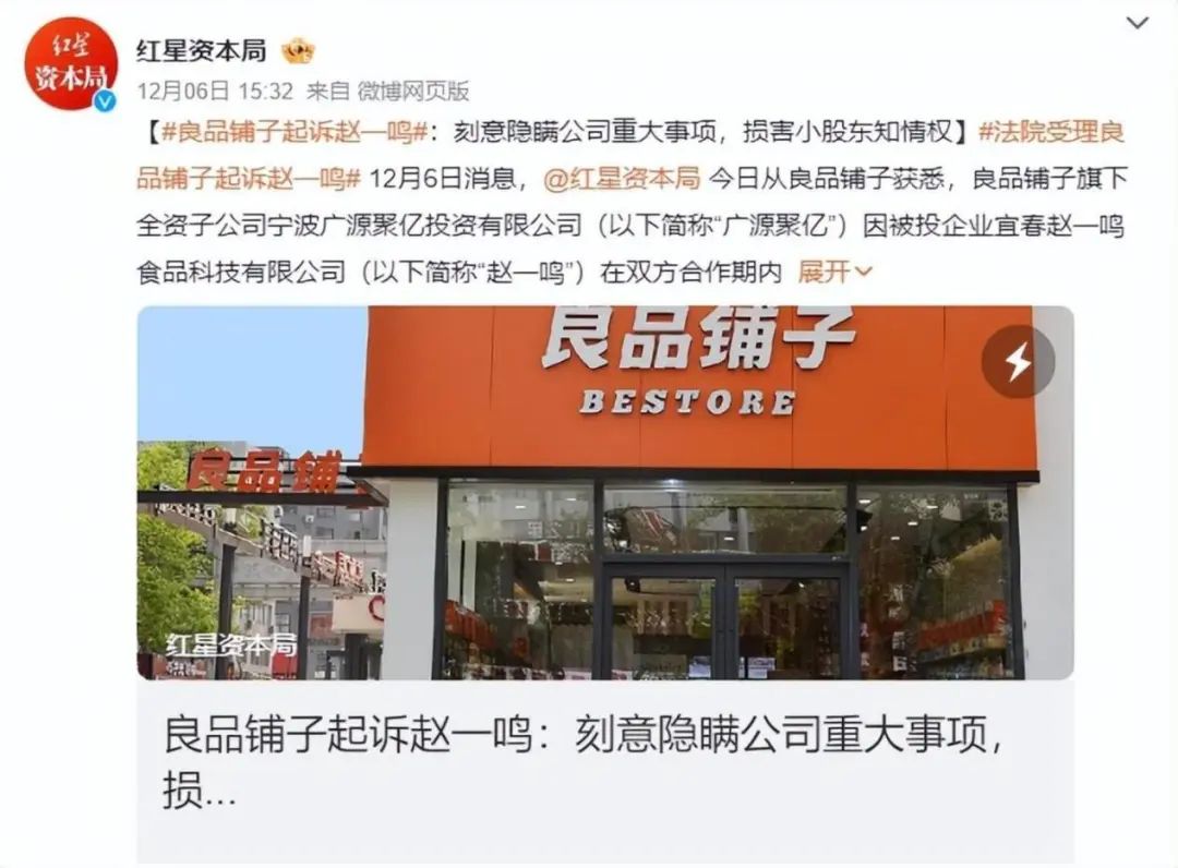 于是,良品铺子以“刻意隐瞒公司重大事项,损害小股东知情权”为由,于11月27日正式向法院提起诉讼。