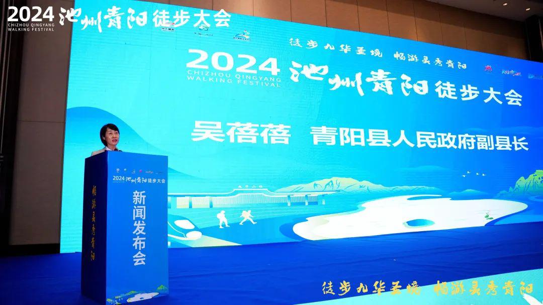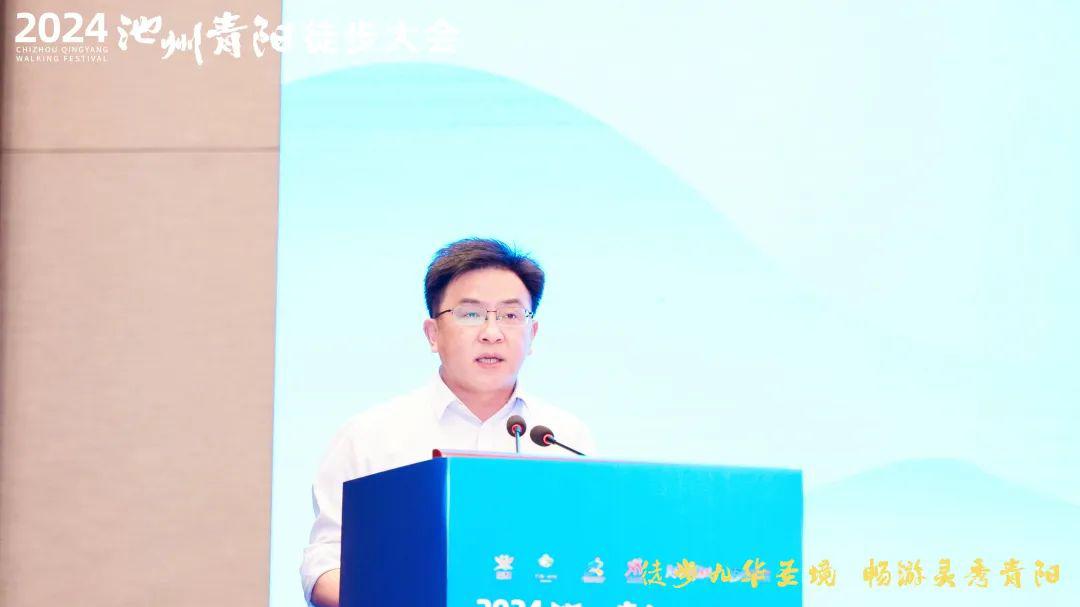 青阳县教体局主要负责同志进行2024池州青阳徒步大会活动发布。