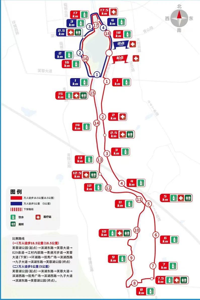 徒步起点位于芙蓉湖广场,万人徒步5公里项目赛道途径芙蓉湖一圈,徒步爱好者们可以深度感受芙蓉湖的自然风光和文化特色。