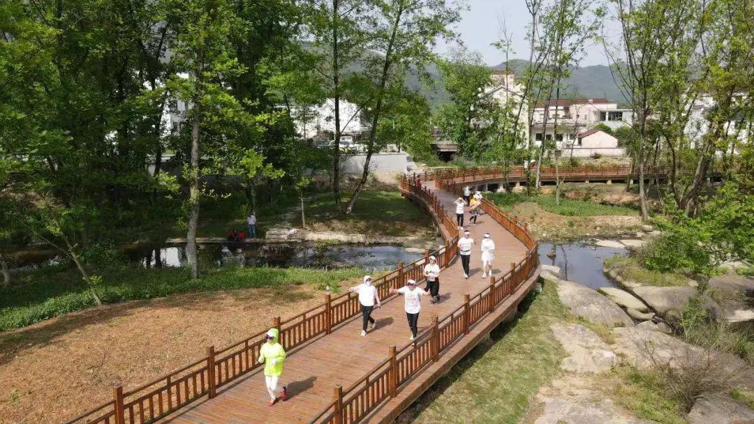 万人徒步18.5公里项目赛道从029县道出发,经过笔架山、进入江村、德懋堂,再由青通河步道一路向北,右依青通河、左傍东九华,形成人在画中走的奇妙景象。
