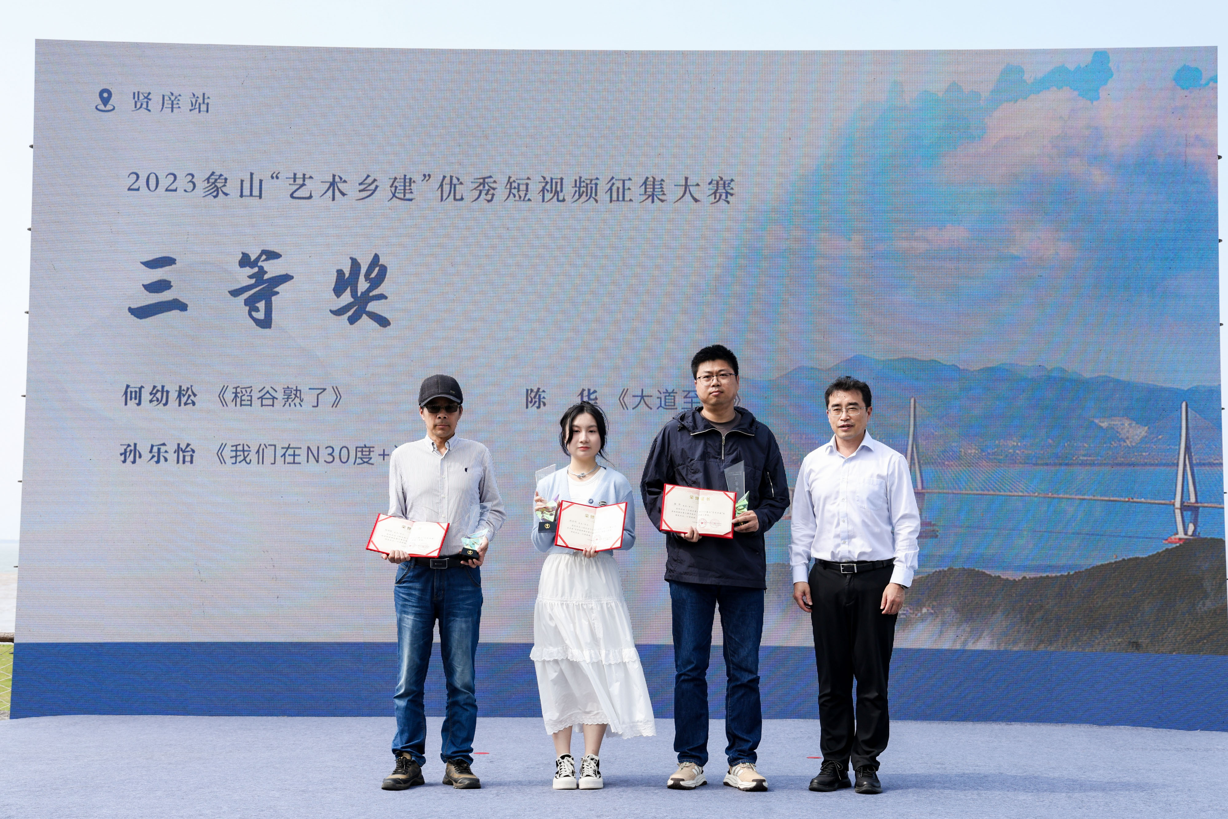 同时,活动现场还公布了2023象山“艺术乡建”优秀短视频大赛的获奖作品。其中,夏琪磊的《盘扣往事》获一等奖,金旭东的《艺术驻村》和杨平的《仙界青莱》获二等奖,何幼松的《稻谷熟了》、孙乐怡的《我们在N30度+追鱼》以及陈华的 《大道至剪》获三等奖,另有陈耀的《好客方家岙》等5部作品获优胜奖。