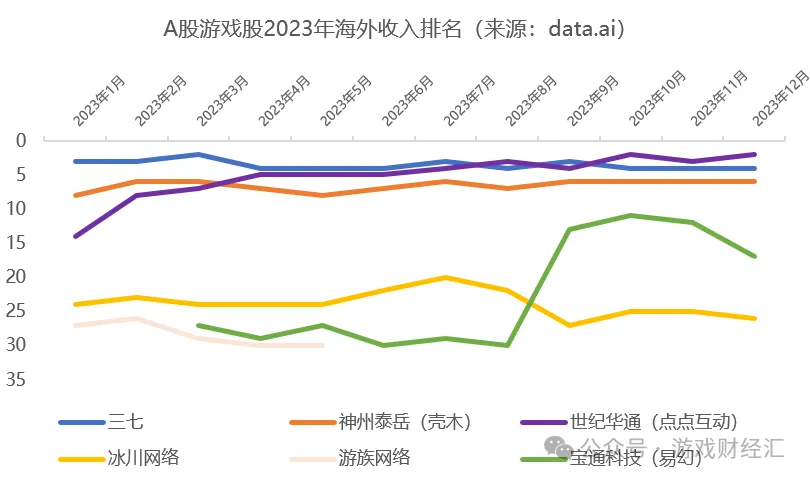 再如,世纪华通旗下点点互动2023年海外收入冲进前五;