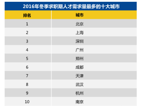 日前,某大型招聘机构发布了2016年冬季中国雇主需求与白领人才供给报告。