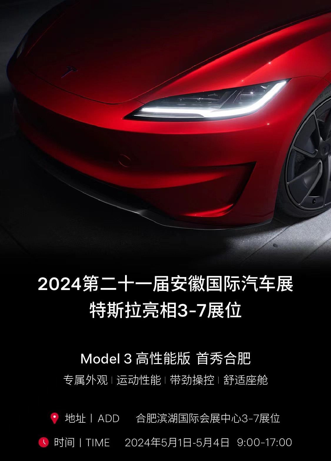 2024安徽国际车展将于5月1日正式启幕。特斯拉作为电动汽车行业的领军者,将携最新款Model 3高性能版首现合肥,为观众解锁智能科技赋能出行的愉悦体验,并为消费者带来惊喜的购车福利。