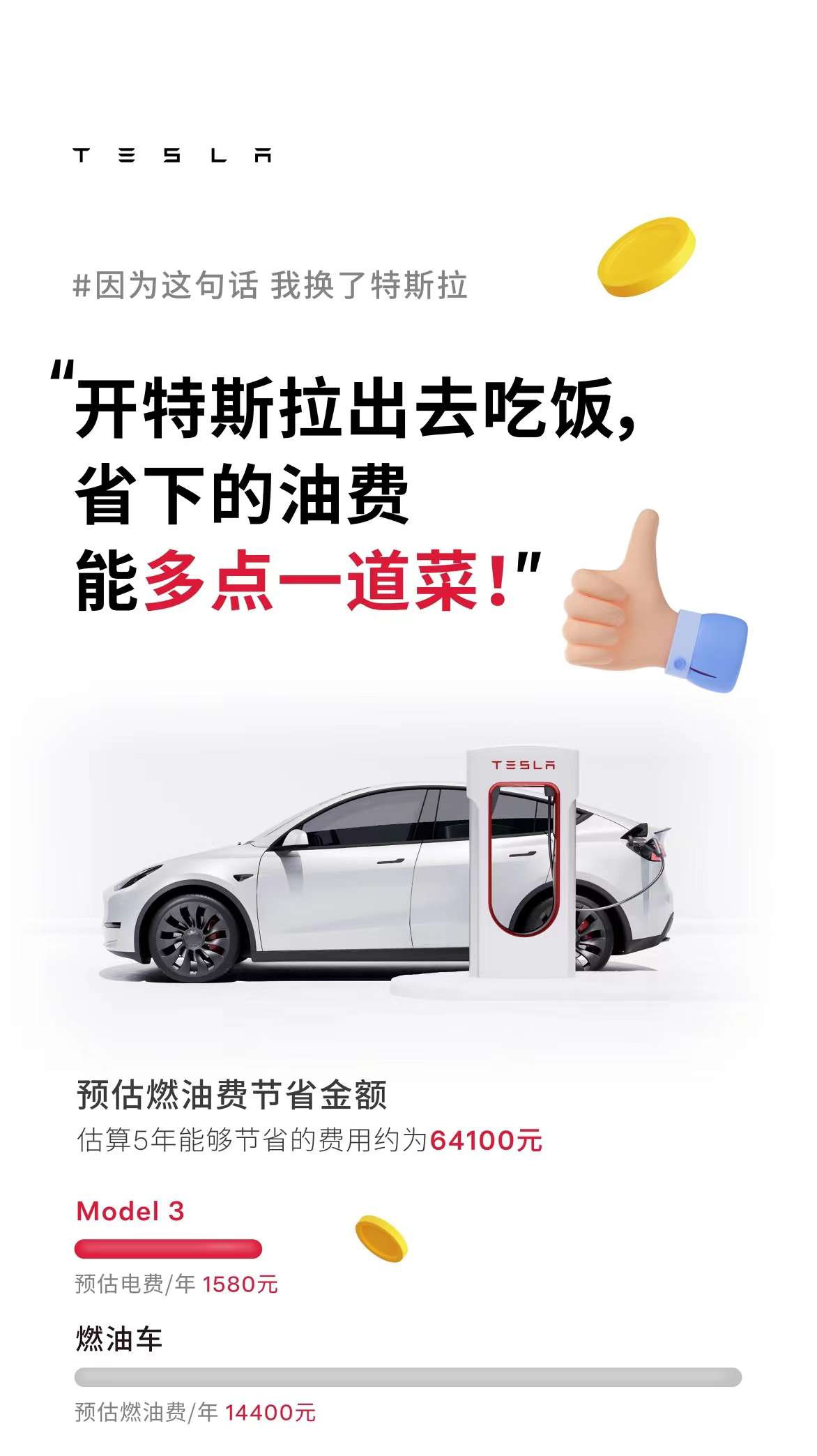如果手头有旧车,置换特斯拉更划算,至长可享5年0息或5年更优超低息的优惠政策,真正实现“无感换车”。如果算一笔账:置换的旧车残值8万抵首付,每月2000多块钱的油钱和保养费,足够支付特斯拉月供,“0首付或0利息”,开走特斯拉新车!