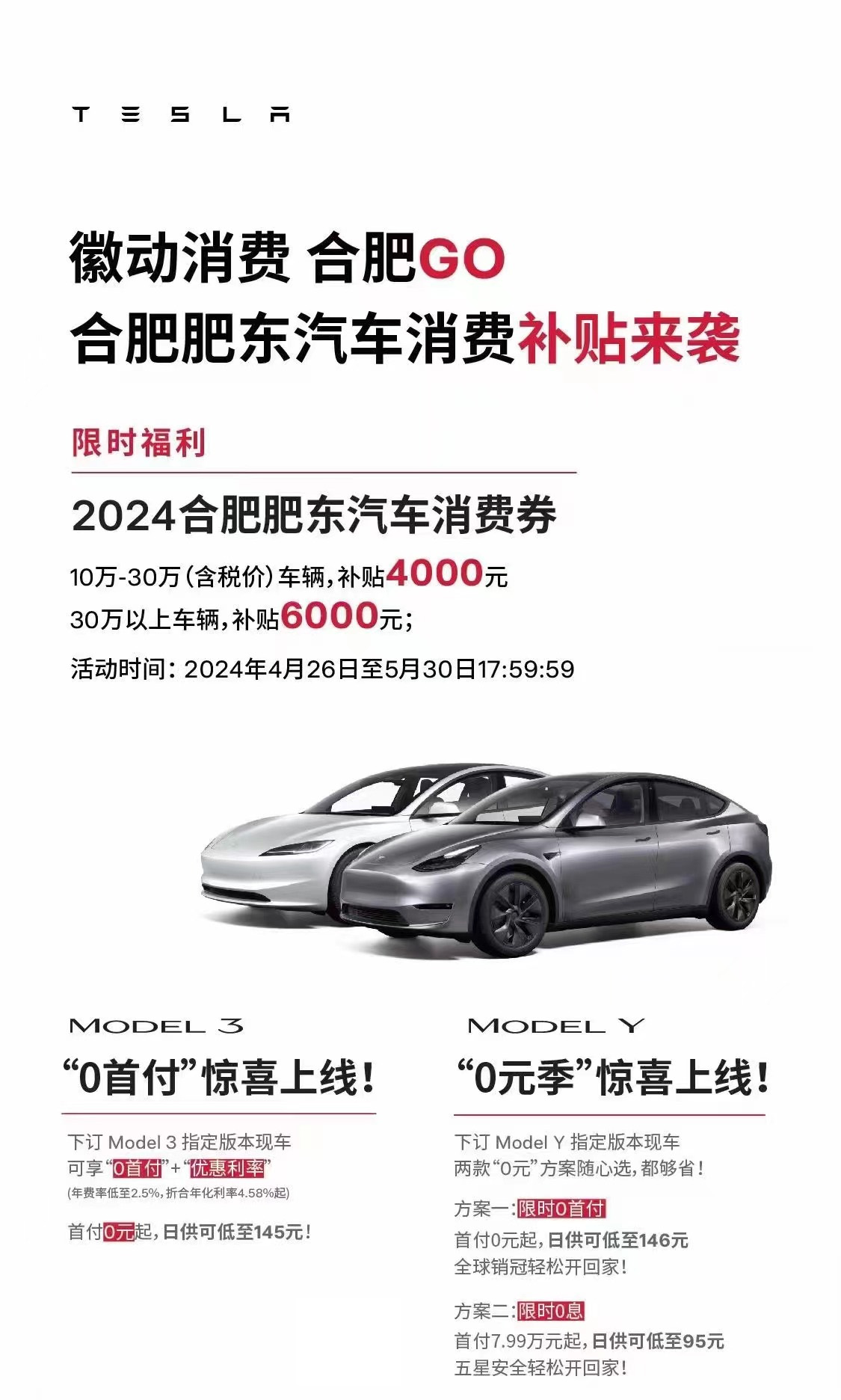 叠加合肥市肥东县购车补贴,车展期间购车且提车申报的消费者还能再省一笔!肥东县商务局于4月24日发布购车补贴,4月26日至5月30日前购车且提车消费者,购车裸车开票价10-30万元(含)的新能源车,可抢领4000元政府消费券。数量有限,先到先得!