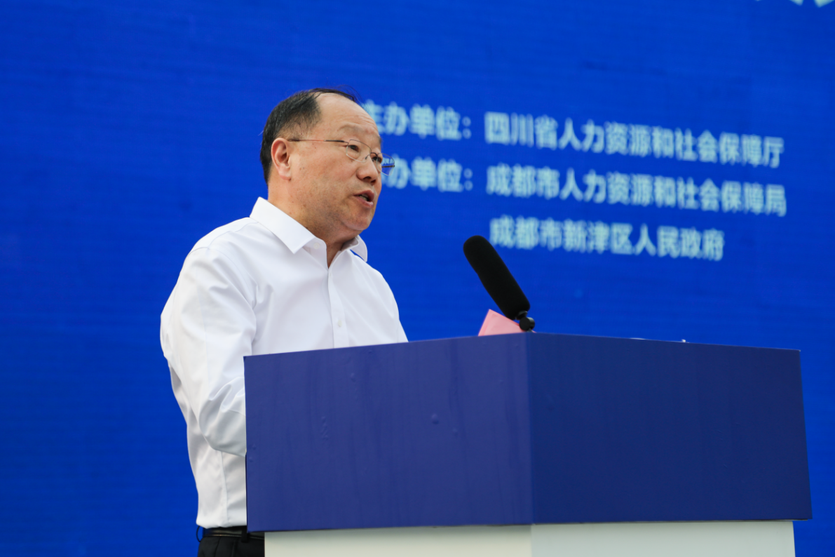 本次活动由四川省人力资源和社会保障厅主办,成都市人力资源和社会保障局、成都市新津区人民政府承办。四川省人社厅党组成员、副厅长刘晓博,四川省人社厅二级巡视员牟方林,四川省人社厅职建处处长李桢,四川省商务厅服贸处副处长杨溢,共青团四川省委学校部副部长闫阳,成都市人社局党组成员、副局长李果,成都市人社局职建处处长杜红林,新津区委副书记、区长胡建平,区委常委、常务副区长贺恩洪,中国东方教育集团副总裁汪俊等领导莅临活动现场,行业精英及社会各界代表同时出席活动。