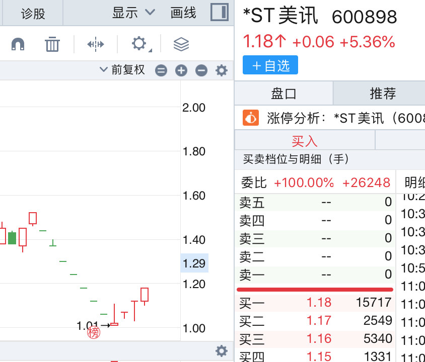 ST美讯(600898.SH)则可能触碰到交易类强制退市,其在4月24日收盘价为1.02元,市值2.91亿元,低于3亿元,若上市公司连续20个交易日总市值低于3亿元,将终止上市。这或许也是该股后几天被拉起的逻辑。截至截稿,ST美讯股价升至1.18元,市值恢复3亿元达3.37亿元。