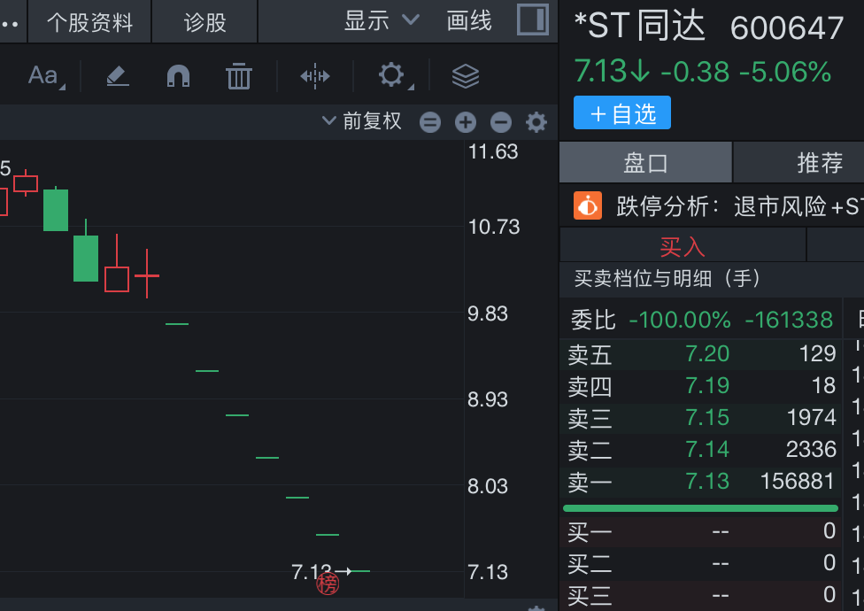 盘面显示,*ST同达自4月19日来,已经连续走出7个“一字跌停”,场内筹码难以脱身。2023年*ST同达的净利润为706.56万元,2024年一季度亏1022.17万元。2022年的审计意见为“带强调事项段的无保留意见”。