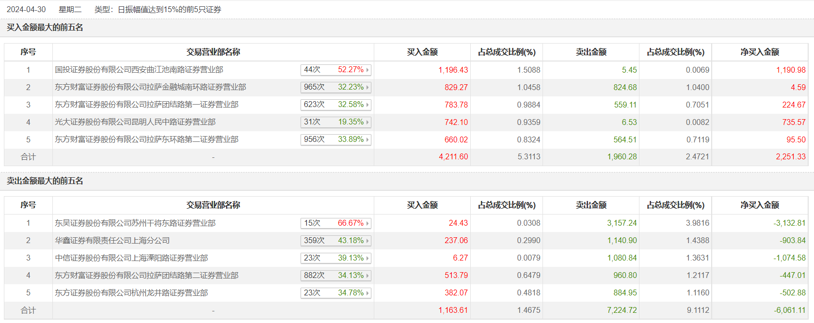 具体来看,知名游资现身龙虎榜,章盟主(东方证券股份有限公司杭州龙井路证券营业部)净卖出502.88万元、孙哥(中信证券股份有限公司上海溧阳路证券营业部)净卖出1074.58万元。此外,东吴证券苏州干将东路证券营业部、华鑫证券上海分公司分别卖出3157.24万元、1140.90万元;国投证券西安曲江池南路证券营业部、东方财富证券拉萨金融城南环路证券营业部分别买入1196.43万元、829.27万元。