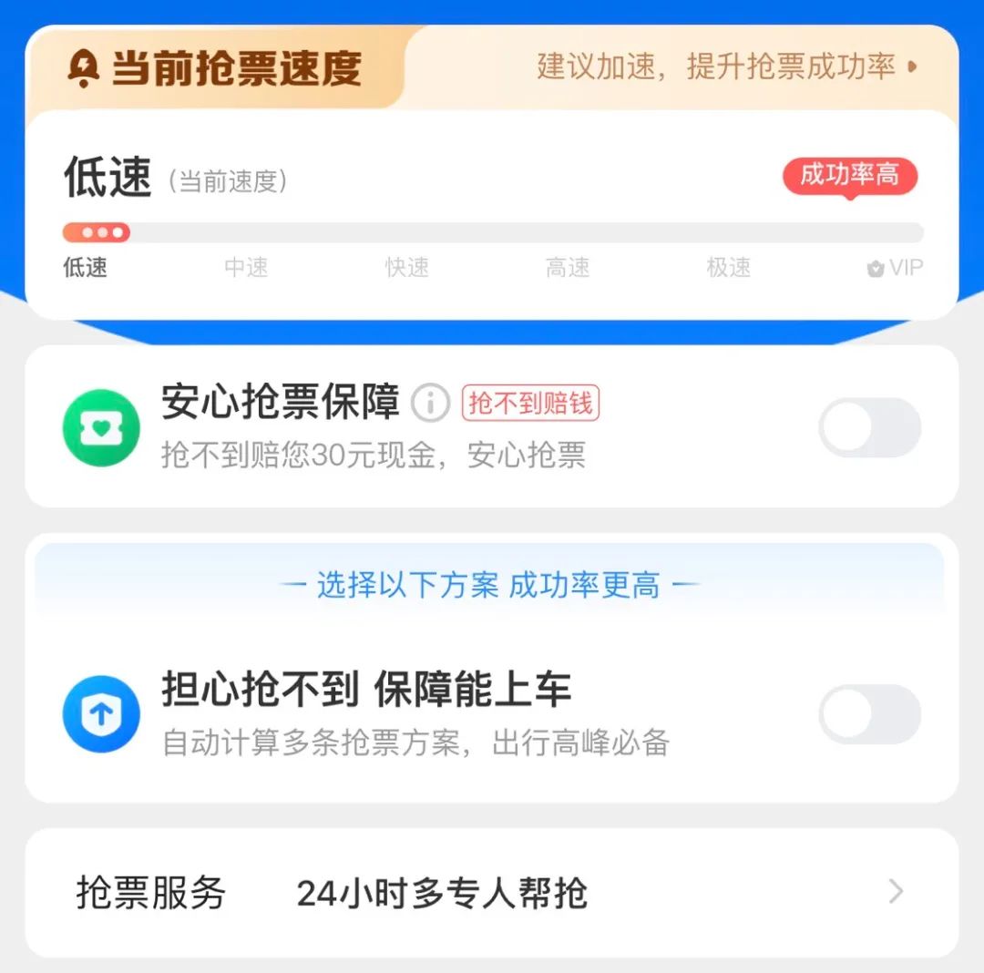 体验了一圈下来,可以看出各个平台的玩法大致相同,涉及到加速功能大部分都是收费的,比如专人帮抢、加速包等,对于某些特定的服务,比如选择靠窗或靠过道的座位,用户可能还需要支付额外的费用。